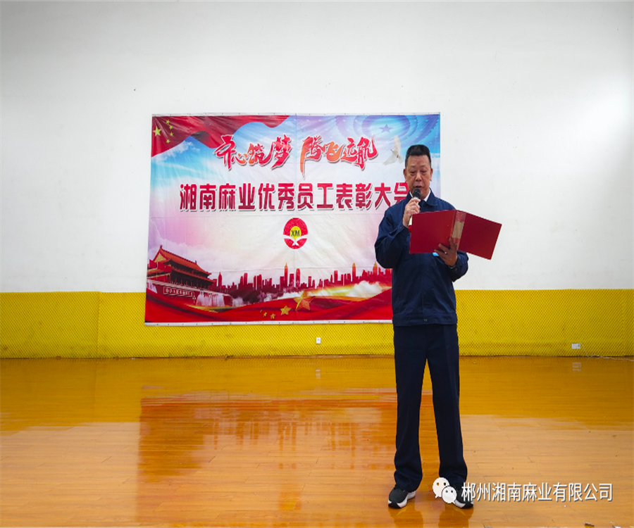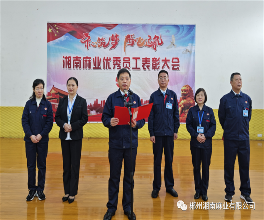 為了營(yíng)造良好的生產(chǎn)工作環(huán)境和學(xué)習(xí)氛圍,進(jìn)一步激發(fā)廣大干部員工向先進(jìn)學(xué)習(xí)的熱情,促進(jìn)公司各項(xiàng)工作再上一個(gè)新臺(tái)階,郴州湘南麻業(yè)有限公司于4月29日上午組織召開2022年度優(yōu)秀員工表彰大會(huì),對(duì)上一年度工作表現(xiàn)優(yōu)異、有突出貢獻(xiàn)的員工予以表彰。